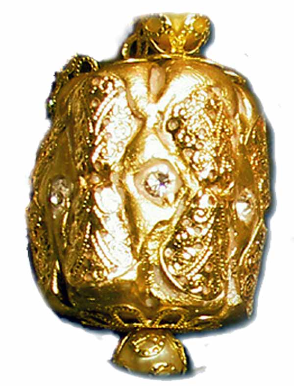 Style Makers By ELAINE LOUIE Willy van Rooy is proof that there is life after modeling. In the 1970's Dutch born Supermodel Willy van Rooy was a runway model in Paris for Yves Saint Laurent, Karl Lagerfeld and Thierry Mugler. Her pictures appeared in Vogue, Bazaar, Elle and every major magazine. She was a favorite of David Bailey and Helmut Newton. In the late 70's, she started to design freelance for Karl Lagerfeld and for Yves Saint Laurent. They bought all of her designs for bags, shoes, jewels and fabrics. Her designs have what she calls a fairy-tale quality. In her studio in Madrid, during the nineties she designed flamboyant shoes ornamented with stones, lace tapestry and brocades, for women who like as much attention paid to the feet as to the face. They were in demand in exclusive shops in Europe and the United States. She created shoes made with local materials,fabrics used for matadors' uniforms and brocades embroidered with gold thread for clothes worn in the south of Spain. In the Twenty-First Century, Willy designs unique, exclusive pieces of jewelry, in LA which are sought after by current supermodels and other modern fashionista, as well as with her former collegues who visit this website.. Today, Willy lives in Los Angeles where she designs exquisite one of a kind pieces of jewelry. The finely- wrought gold beads are hand made and they are very large . |