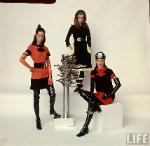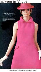 breasts" dress. Cardin raises skirts 4" above the knee and plunges necklines back and front to the