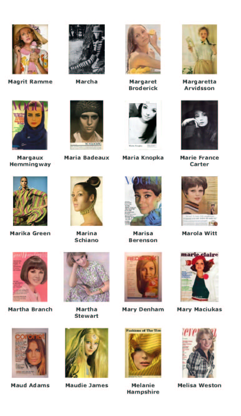 Agneta Darin Agneta Frieberg Alana Collins Alberta Tibruzi Ali MacGraw Alison Rose Amanda Lear Andie Macdowell Andrea Dromm Andrea Rimaldi Angela Howard Angela MacDonald Angelica Huston Anita Pallenberg Ann Schaufuss Ann Turkel Anne Charlotte Anne de Zogheb Anne Hollbrook Anne Larson Anne Powers Anne Rebot Anne St. Marie Antonia Appolonia Arlene Kinney Astrid Heeren Audrey Sedor Aurore Clement Babette Baby Jane Holzer Barbara Bach Barbara Berger Barbara Carrera Barbara Janssen Barbara Leigh Barbara Miller Barnstable Twins Beate Schulz Benedetta Barzini Berkley Johnson Beska Tolstrap Betsy Cameron Bettina Beverly Johnson Bianca Jagger Birgit Larsen Birgitta af Klerker Bitten Knudsen Bonnie Lysohir Bonnie Trompeter Brigitte Bauer Candice Bergen Carol Lynley Carole Ford Carole Hobbs Carole la Brie Carole Singleton Carrie Nygren Cathee Dahmen Cay Sanderson Celia Hammond Chama Charlene Dash Charly Stember Cheryl Tiegs Cheyenne Chris O'Connor Chris Royer Chrissie Shrimpton Christa Fiedler Christiana Steidten Christine Biddle Christine Simonet Claudia Duxbury Clotilde Colleen Corby Cristina Ferrare Cybill Shepherd Cynthia Korman Dalma Danielle Poe Dayle Haddon Deanna Lambert Debbie Biernacki Debbie Dickinson Deborah Dixon Denise Hopkins Diana Vreeland Diane Conlon Diane Taff Diane Washington Dolores Hawkins Dolores Major Dominique Sanda Donna Allegra Caracciolo Donna Jordan Donna Mitchell Donyale Luna Dorothea McGowan Dot Feurer Dottie Harris Editha Dussler Eija Elizabeth of Toro Elnora Elsa Martinelli Elsa Peretti Erica Toth Erin Gray Esme Esti Eva Eva Maelstrom Eve Nielson Evelyn Kuhn Florence Julien Francoise Rubartelli Gail Reaben Gala Gayle Pope Genvieve Waite Gia Carangi Grace Coddington Gudrun Gunilla Bergstrom Gunilla Lindblad Heather Hewitt Heide Goldman Heide Wiedeck Helaine Carlin Helen Hogberg Helevi Keko Heloise Hiroko Hoima MacDonald Holly Forsman Iman Ina Balke Ines Lunardi Ingmarie Ingrid Boulting Iris Bianchi Irja Eckerbrant Isa Stoppi Isabella Albonico Jaan Stephens Jacqueline Bisset Jan Ward Jane Asher Jane Forth Jane Gallop Jane Gill Jane Hitchcock Jane Thorvaldson Janice Dickenson Jean Branton Jean Shrimpton Jean White Jeanette Christjansen Jeannie Day Jennifer O'Neill Jenny Boyd Jerry Hall Jill Kennington Jill Stuart Jill Twiddy Joan Bellefontaine Joan Delaney Joan Paulson Joan Severance Joan Thompson Joanna Lumley Joanne Duffy Joanne Vitelli Joanne Webb Jolie Jones Jolina Zanduetta Josette Elly Joyce Ingalls Joyce Walker Juli Foster Karen Bjornson Karen Braun Karen Graham Karin Mossberg Kathy Brothers Kathy Carpenter Kathy Fuller Davis Kathy Hanes Kathy Jackson Kathy Johansen Kathy Loghry Kathy McKay Katya Kay Campbell Kay King Kecia Nyman Kellie Kelly Emberg Kelly Harmon Kiki Olsen Kim Basinger Kristi Embertson Kristi Hager Laura Alvarez Laurel Lee Lauren Hutton Lena Kansbod Leone James Lesley Jones Lilly Mor Roy Lily Nielsen Linda Gauche Linda Keith Linda Morand Linda Spierring Linda Syrota Lisa Cooper Lisa Palmer Lisa Ryal Lisa Taylor Liz O'Brien Lois Chiles Louise des Pointes Lucy Angle Lynn Johnson Lynn Kohlman Lynn Leonard Lynn Osborne Lynn Sutherland Lynn Woodruff Maggie Eckart Magrit Ramme Marcha Margaret Broderick Margaretta Arvidsson Margaux Hemmingway Maria Badeaux Maria Knopka Marie France Carter Marie Helvin Marika Green Marina Schiano Marisa Berenson Marola Witt Martha Branch Martha Stewart Mary Denham Mary Maciukas Maud Adams Maudie James Melanie Hampshire Melisa Weston Melissa Congdon Merle Lynn Michelle Roth Mick Lindberg Mildred Mirella Pettini Missy Prowell Molly Corby Mona Grant Monique Chevalier Monique Dutto Mouche Moyra Swan Nadeje Naneen Shaw Naomi Sims Nena von Schlebrugge Nicole de la Marge pam Barkentin Pam Dawber Pam Erickson Pam Suthern Pamela Brooks Pamela Jonitas Pamela McCarthy Pat Cleveland Pat Dow Pat McGuire Patti Boyd Patti Hansen Paula Feiten Paula Pritchett Paulene Stone Peggy Dillard Peggy Moffitt Penelope Tree Penny Ashton Penny James Perii Barkentin Petra Niemann Phoebe Cates Phyllis Major Phyllis Nesmith Phyllis O'Connor Pia Pia Buggert Pola Posey Prue Pratt Regine Jaffrey Renata Beck Rene Russo Rinske Hali Rita Egan Rita Scherrer Ronnie Carol Rosie Vela Sally Gates Sally Murdoch Samantha Jones Samantha Juste Sandra Paul Sandy Hilton Sandy Shue Sarah Vane Shelley Hack Shelley Smith Shirley Ann Hayes Simone D`Alliencourt Sondra Peterson Stephani Cook Stephanie Farrow Sue Baloo Sue Purdy Sunny Griffin Sunny Redmond Susan Blakely Susan Bottomly Susan Brainard Susan Dey Susan Forristal Susan Moncur Susan Murray Susan Porter Susan Schoenburg Susan van Harren Susan van Wyck Suzy Parker Suzy Smith Tamara von Leichtenstein Tanya Mallet Terri May Terri Smith Terry Reno Tessa Tilly Tizzani Toni Clayton Tracy Weed Tricia Kinney Tricia Sembera Twiggy Ulla Anderson Ulla Bomser Uschi Obermaier Ute McCaffery Valerie Lohr Verena Corda Veronica Hamel Veronica Webb Veruschka Vibeke Knudsen Vicki Hilbert Vicki Howard Vicky Overton Viviane Wallis Franken Wendy Hill Wilhelmina Willy van Rooy Windsor Elliott Yasmine Sokal Zuleika